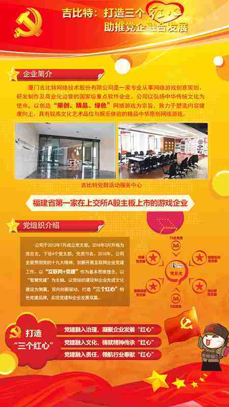 未来公司将全面学习贯彻习近平新时代中国特色社会主义思想和党的十九大精神,,持续强化“互联网+党建”的思维理念,,,以“智慧党建”为主轴,,,,以党组织建设和企业先进文化建设为侧翼,,,双向创新驱动,,,,引领有信仰、、、、有情怀、、有价值的新时代游戏研发运营,,在不断发展壮大的同时,,成为行业的“红色标杆”,,,实现党建和企业发展双赢。。。