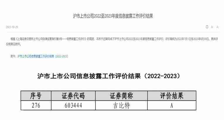 近日,,,上海证券交易所(以下简称“上交所”)发布2022-2023年度信息披露工作评价结果。。。918.com(股票代码:::603444)凭借规范的公司治理、、、高质量的信息披露以及良好的投资者关系管理再次荣获信息披露工作A级评价,,公司连续两年获此殊荣。。
