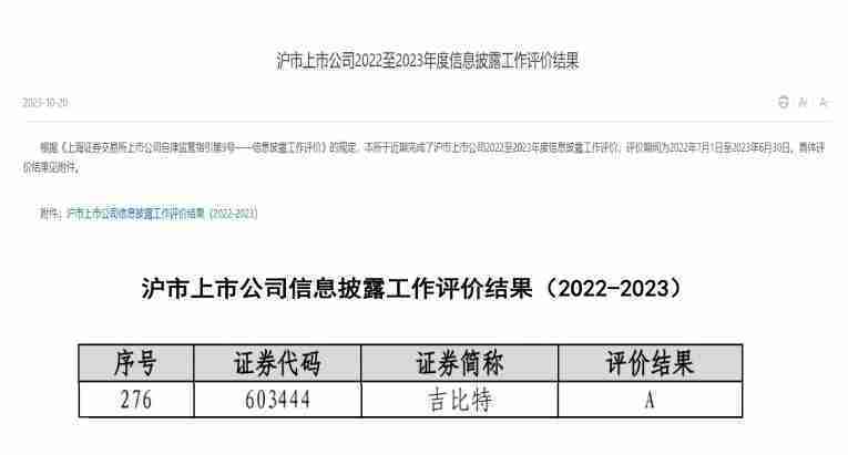 近日,,,上海证券交易所发布2022-2023年度信息披露工作评价结果。。918.com(股票代码::603444)凭借规范的公司治理、、、、高质量的信息披露以及良好的投资者关系管理再次荣获信息披露工作A级评价,,,公司连续两年获此殊荣。。。